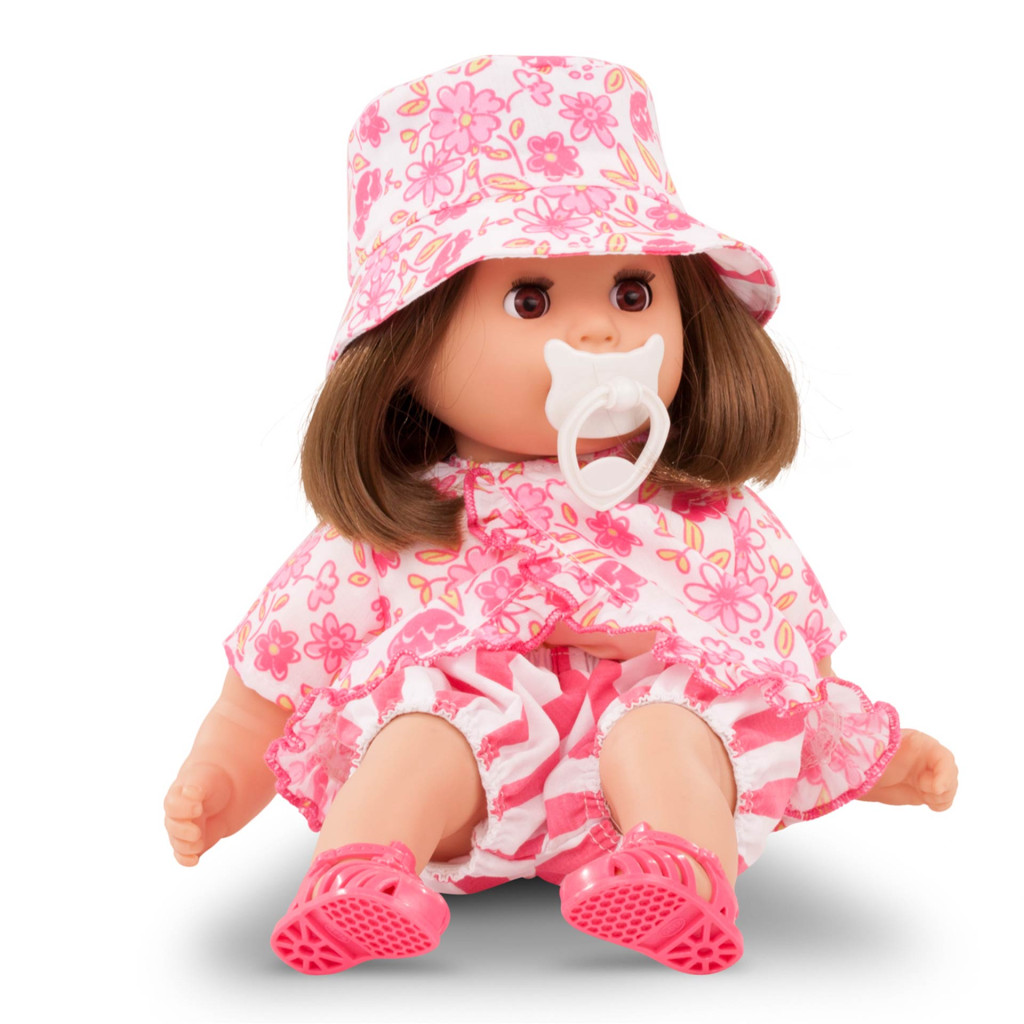 Cosy Aquini cieszy się, że dziś pójdzie nad jezioro. Wybrała tę wspaniałą letnią koszulę z falbankami i kwiatowym nadrukiem oraz lekkie pantaloniki. Wystarczy założyć letni kapelusz, gumowe sandały i jedziemy. Stop, nie zapomnij o smoczku. Nigdy nic nie wiadomo!