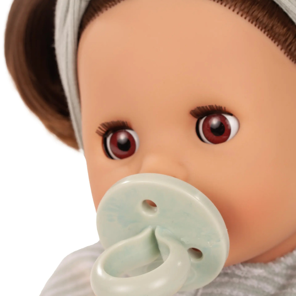Fie în cadă, fie în jocuri imaginative de rol, această păpușă sprijină dezvoltarea emoțională, stimulează creativitatea și, datorită corpului moale, este combinația perfectă între păpușă de îmbrățișat și păpușă de baie. Setul include o suzetă cu un lanț practic, astfel încât să fie mereu la îndemână – ideal pentru joacă realistă. Ochii ei „adormiți” căprui se închid delicat când este așezată culcat, oferind și mai mult spațiu pentru povești creative.