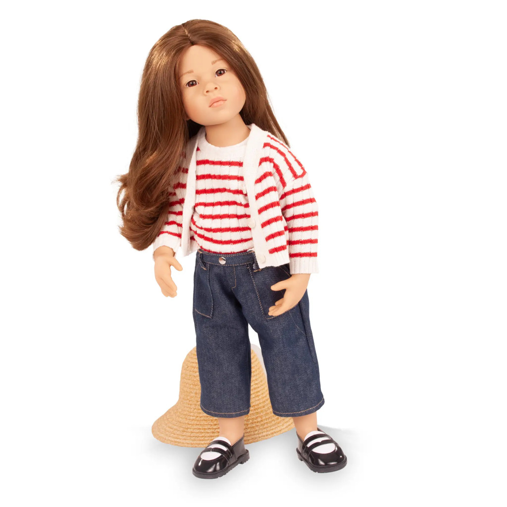 Fă cunoștință cu Emilia, o păpușă care stă în picioare, de înaltă calitate. Este îmbrăcată cu stil într-o vestă fină tricotată, cu un cardigan asortat, blugi realizați cu grijă, pantofi eleganți tip Mary Jane și o pălăriuță fermecătoare. Fiecare detaliu reflectă calitatea și dragostea pentru măiestrie. Emilia este o prietenă durabilă, creată să inspire joaca creativă și să aducă bucurie chiar și doar privită.
